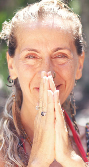 Walks with the elements and yoni crystals as allies on her path.